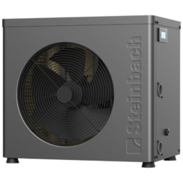 Größenvergleich: Die Steinbach Mini Wärmepumpe braucht deutlich weniger Platz als das nächstgrößere Modell von Steinbach. In Kombination mit einer Solar-Poolheizung können solche Geräte sehr viel Wärme ins Wasser einspeisen, ohne dass die Stromkosten ausufern.