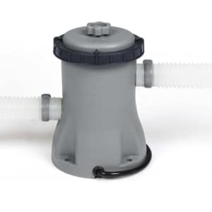 Bestway legt die äußerst schwache Filterkartuschenpumpe mit 1.249 Liter pro Stunde bei. Rechnerisch würde die Umwälzleistung eigentlich gerade noch ausreichen. ABER: Diese Pumpe baut nicht annähernd genug Druck auf. Die Wasserdurchmischung gelingt so leider nur ungenügend und mit dieser Pumpe macht Ihr Euch das Leben unnötig schwer. Unser Tipp: Die der Pumpe beiliegenden Anschlüsse nutzen, aber die Pumpe selbst gegen eine stärkere Filteranlage ersetzen.