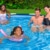 Bezüglich der Größe haben wir es mit einem mittelkleinen Pool zu tun. Dank der Wasserfüllhöhe von grob 68 cm können Kleinkinder problemlos stehen und Erwachsene sind sitzend bis zur Brust im Wasser. Eltern können mit den Kindern zusammen Zeit verbringen, Kinder mit Altersgenossen planschen und gestresste Erwachsene können im Hochsommer die Beine lang machen und abkühlen. Für Eltern ist dieser Pool insofern besonders interessant, weil man spielende Kinder wegen der niedrigen Poolhöhe sehr leicht im Blick hat.