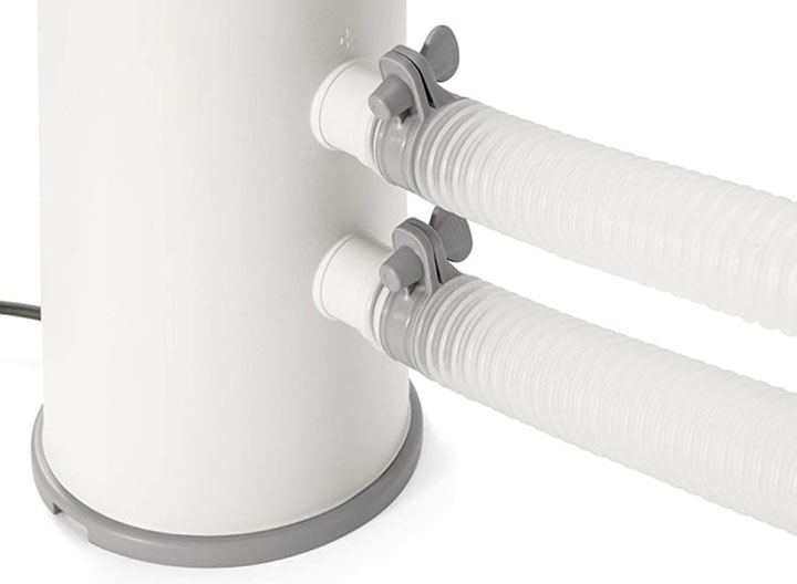 Erfreulicherweise sind Anschlüsse im Lieferumfang dabei. Die passen an viele Intex, Bestway und Avenli Pools wunderbar ran. Die Anschlüsse beinhalten auch das Aeration Set. Damit bekommt Ihr mehr Sauerstoff in den Pool. Außerdem verklumpen feinste Sedimente und können laut Intex besser gefiltert werden, was die Wasserklarheit weiter steigern soll. Über dem Pool selbst soll die Luftfrische steigen, weil der Sauerstoff luftverbessernd wirkt. Der Effekt ist sicherlich da – spürt man ihn aber bewusst? Ich würde sagen: Nein.