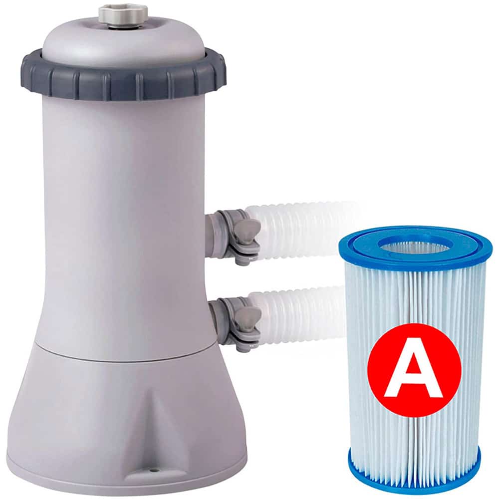 Wir empfehlen Euch an dieser Stelle die Intex Katuschenfilterpumpe 28638 mit 3785 Liter / Stunde. Diese ist mit 2,7m³/h Nettoleistung stark genug für alle wichtigen Zubehörgeräte. Wie z.B. der sehr empfehlenswerte Bestway Oberflächenskimmer. Erfreulich: Die Intex 28638 ist nur minimal kostenintensiver als die Intex Pumpe 28604, bietet Euch aber eine enorme Leistungssteigerung. Die Pumpe hat also ein sehr gutes Preis-Leistungs-Verhältnis, sie ist leise und verbraucht nur wenig Strom. Noch besser: Anschlüsse sind gleich dabei.