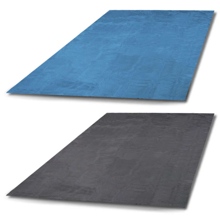 - Es gibt zwei Versionen: Einmal Oberseite in blau und Unterseite in schwarz für klassische Pooloptik. Die zweite Version ist beidseitig schwarz und auf maximale Wärmeaufnahme hin optimiert.