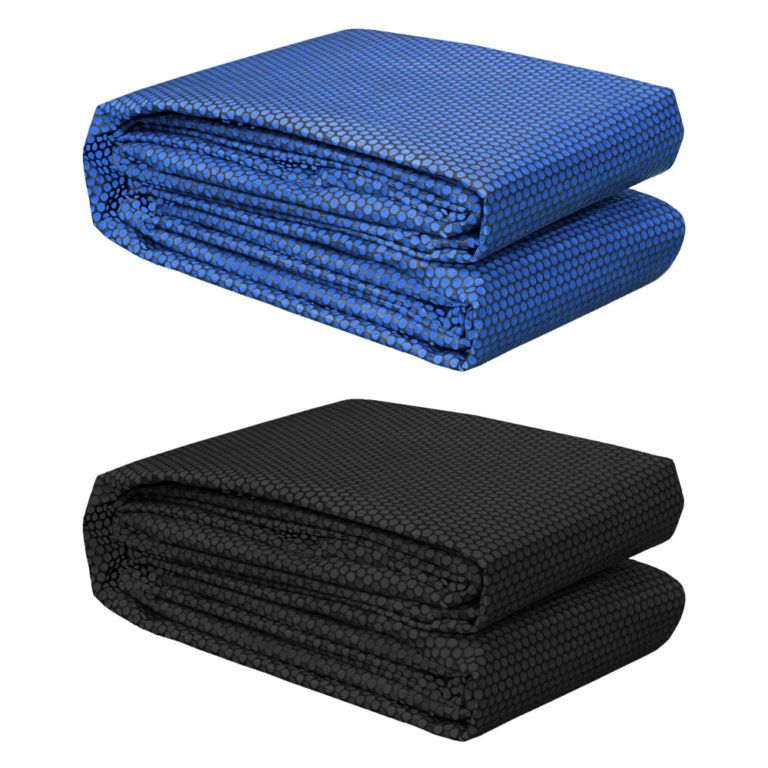 - Es gibt zwei Versionen: Einmal Oberseite in blau und Unterseite in schwarz für klassische Pooloptik. Die zweite Version ist beidseitig schwarz und auf maximale Wärmeaufnahme hin optimiert.